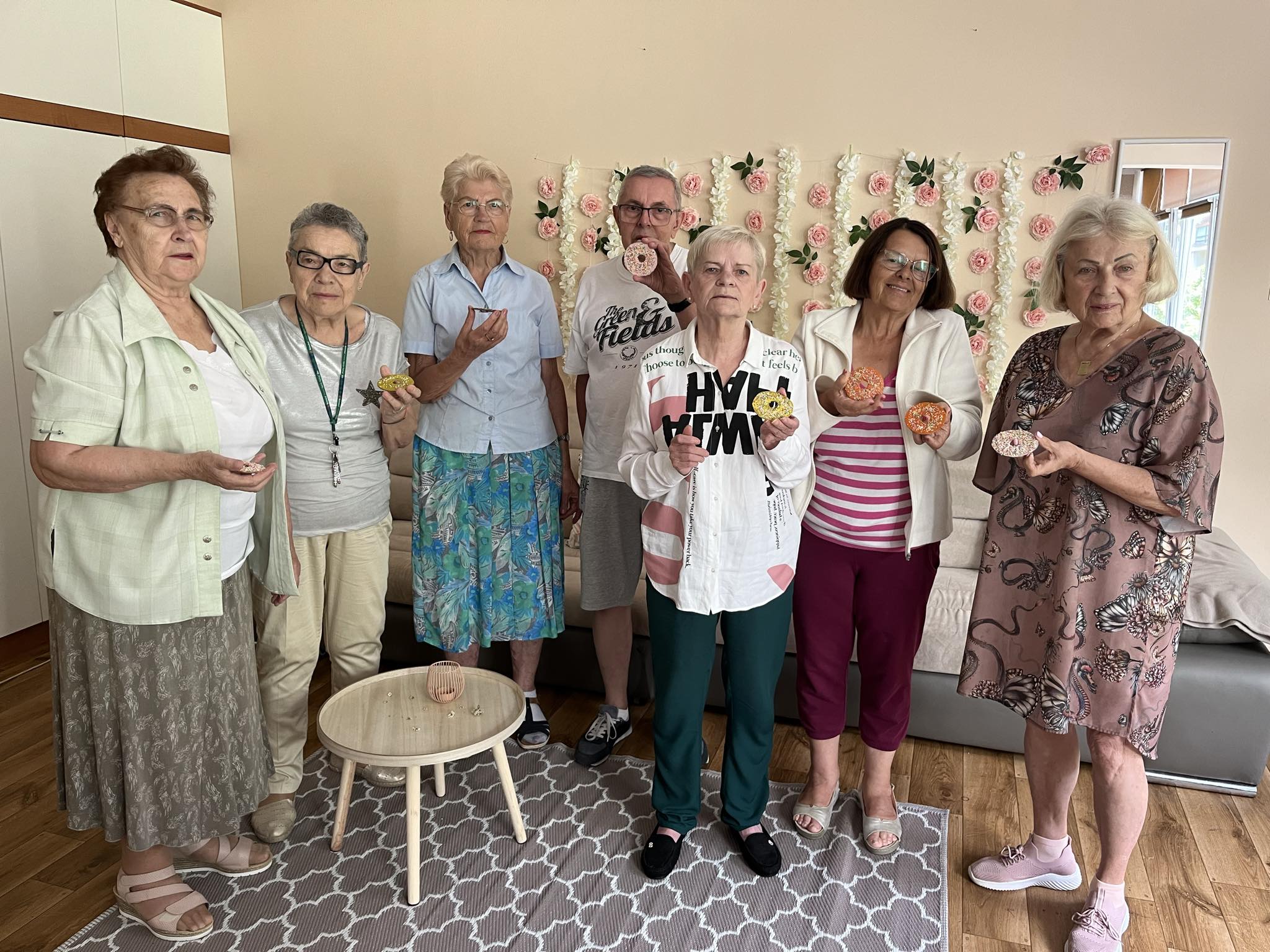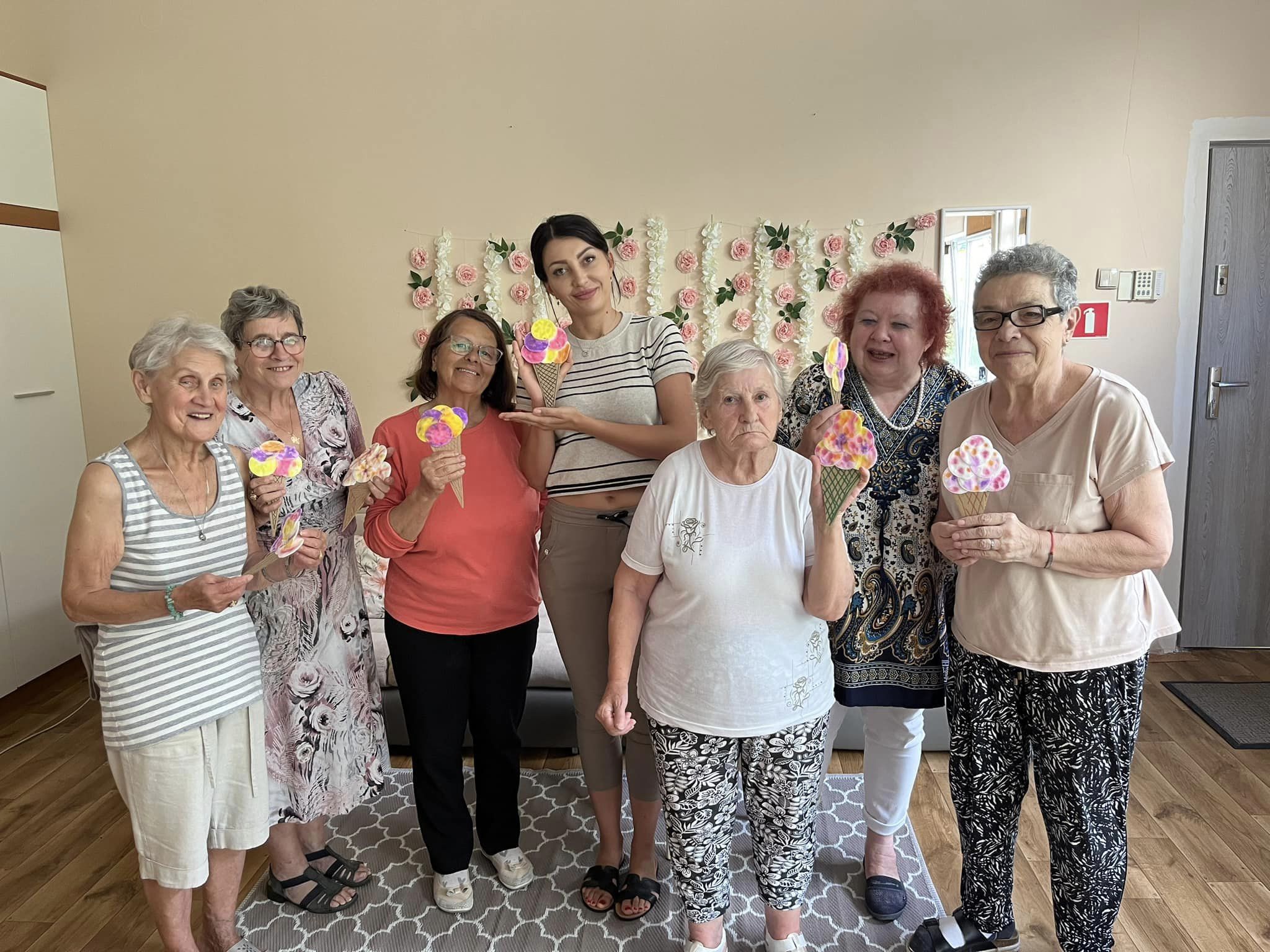 W pierwszych dniach wakacji świetnie bawiliśmy się przy wspólnym grrilu. Przy tak pięknej pogodzie na zajęciach plastycznych tworzyliśmy rękodzieła związane z latem. Dla ochłody oraz przypomnienia sobie smaków dzieciństwa wspólnie wybraliśmy się na lody. Podczas zajęć doskonalimy zmysł wzroku, słuchu, koordynacji ruchowej, spostrzegawczości, zwinności i uważności. W lipcu odbyła się zabawa taneczna na której nasi podopieczni bawili się przednio. W tym miesiącu swoje imieniny obchodziła Pani Halinka i Panie Anie.