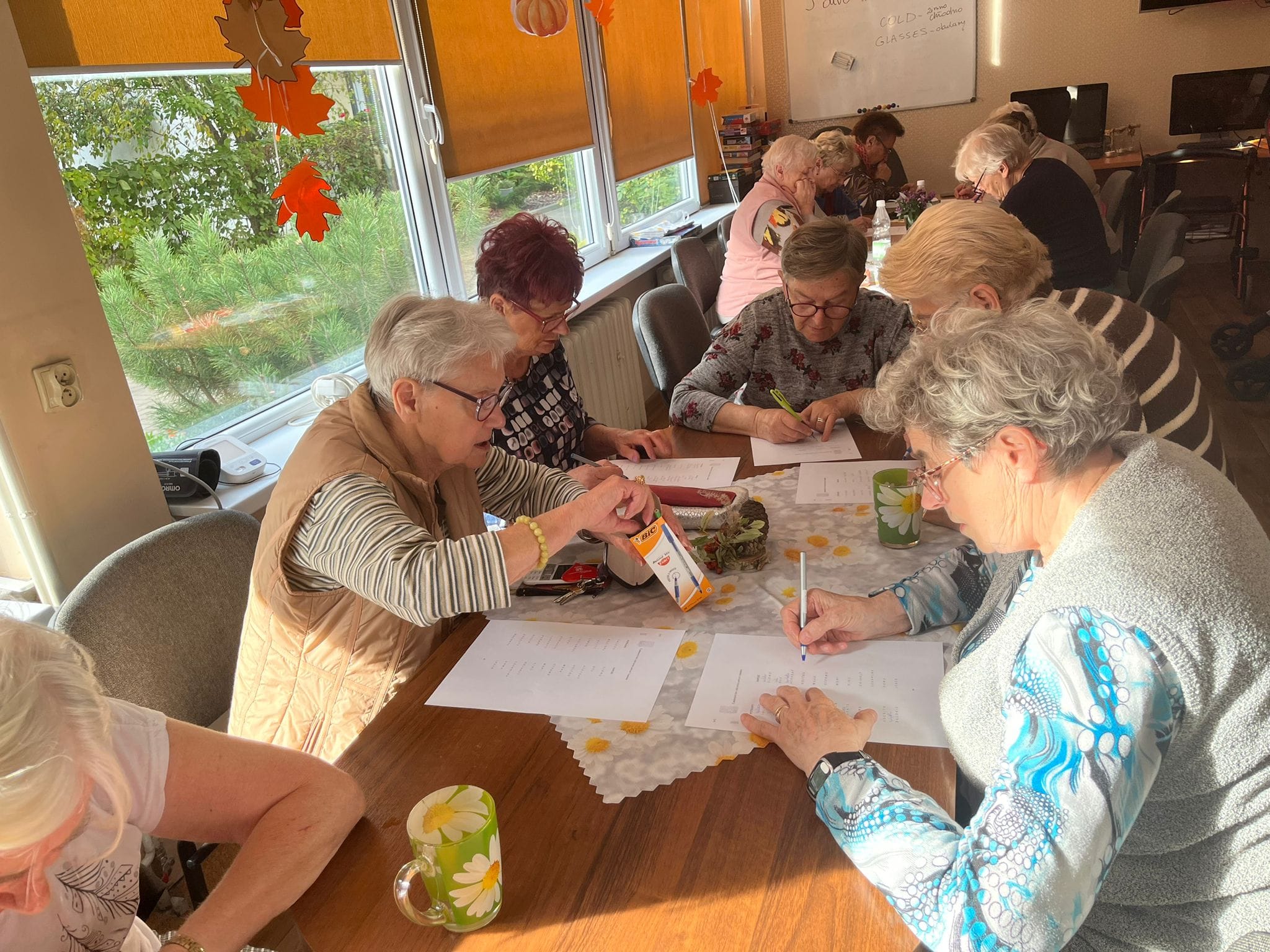 Październik jak na prawdziwych „studentów” przystało rozpoczęliśmy nowym rozkładem zajęć! Z pierwszym tygodniem Nasi Podopieczni rozpoczęli m. in z jogę dla seniora czy występy karaoke. Bardzo dużym zainteresowaniem cieszyły się zajęcia z gimnastyki, chóru , ćwiczeń pamięci czy zajęć plastycznych. Było nam bardzo miło gościć na pikniku zorganizowanym przez Klub Integracji Społecznej oraz Klub Senior+ w Kaliszu. W październiku odwiedziliśmy Zamek Książ pod Wałbrzychem. Piękna pogoda poza zwiedzaniem umożliwiła nam spacer po okolicznym parku. Odwiedziliśmy również palmiarnie gdzie mogliśmy podziwiać wspaniałe okazy egzotycznych roślin . Wycieczkę uwieńczył przepyszny wspólny posiłek Ostatnie tygodnie października były bardzo intensywne. Seniorzy nawet na moment nie zwolnili tempa a my starliśmy się aby każdy dzień w naszym ośrodku był ciekawy i kolorowy. W jeden z poniedziałków zorganizowaliśmy zajęcia geograficzne gdzie mieliśmy szansę wspólnie zwiedzić Turcję a także spróbować prawdziwych tureckich kebabów. Starliśmy się również regularnie dbać o ruch, seniorzy uprawiali nordic walking, korzystali z zajęć na zdrowy kręgosłup czy zajęć ruchowych. Udało się nam również zorganizować seans kina klubowego . W październiku byliśmy gośćmi w PBP Książnica Pedagogiczna im. A. Parczewskiego w Kaliszu na wystawie prac plastycznych zorganizowanej i wykonanej przez Dom Pomocy Społecznej, który to również odwiedziliśmy, biorąc udział w fantastycznym wydarzeniu jakim był na bal jabłkowy. Serdecznie dziękujemy za zaproszenie i wspaniałą zabawę! Nasi seniorzy bawili się również na zabawie tanecznej zorganizowanej w naszym ośrodku. W październiku swoje imieniny obchodziła Pani Teresa oraz Pani Jadwigi.