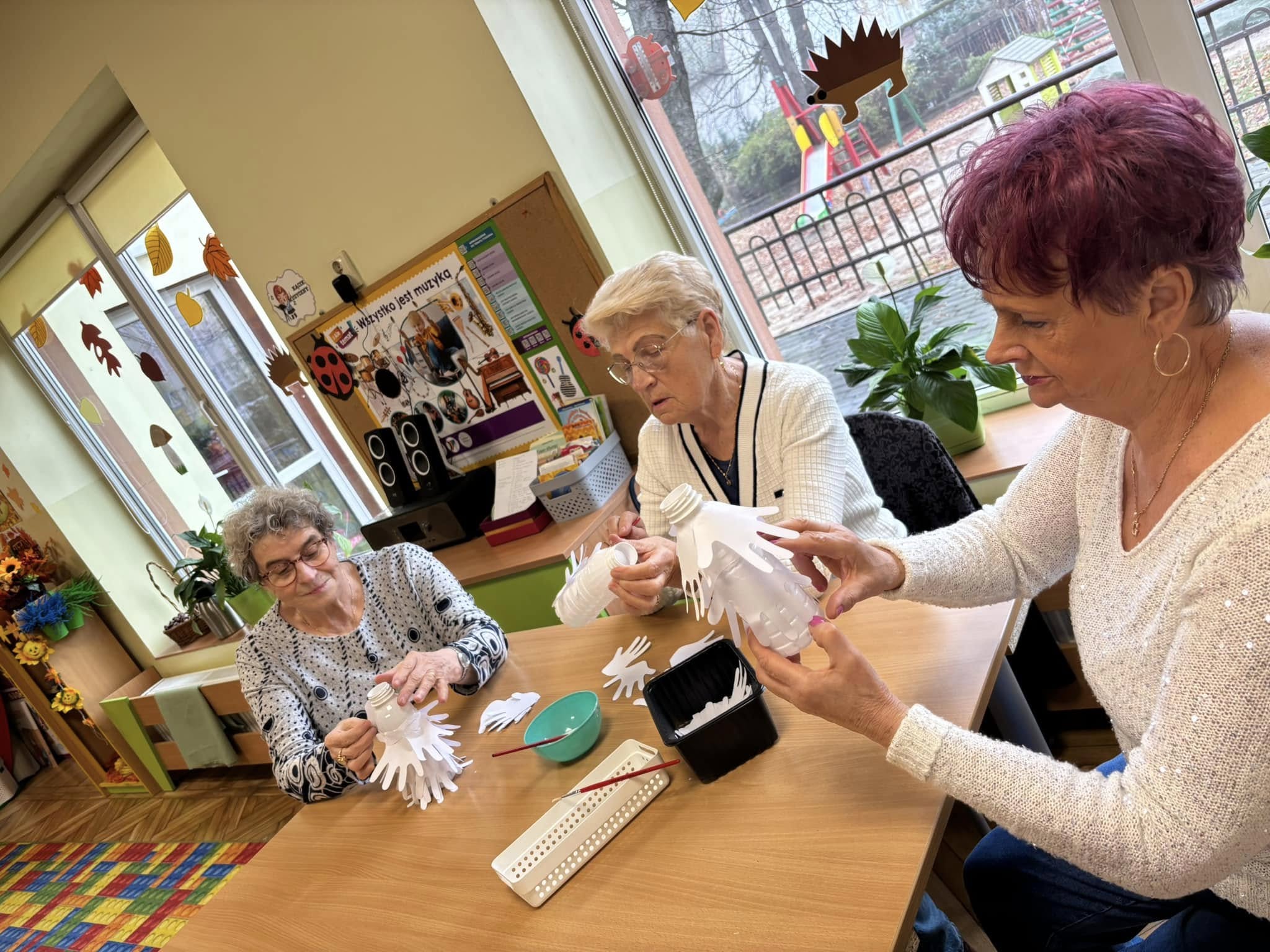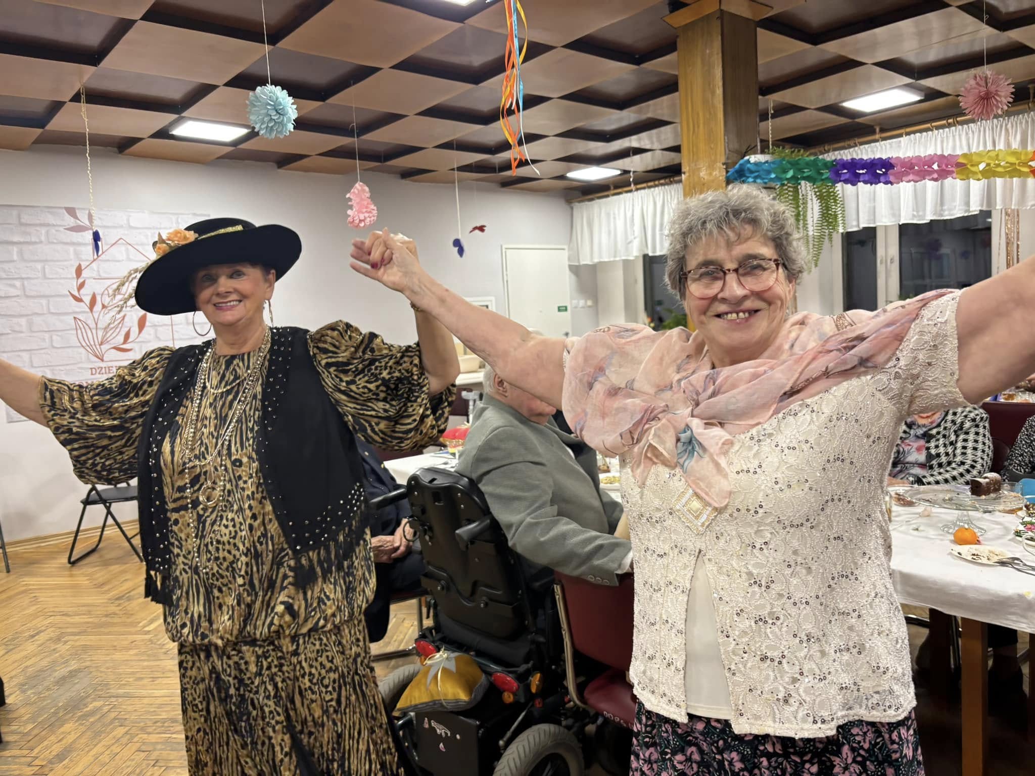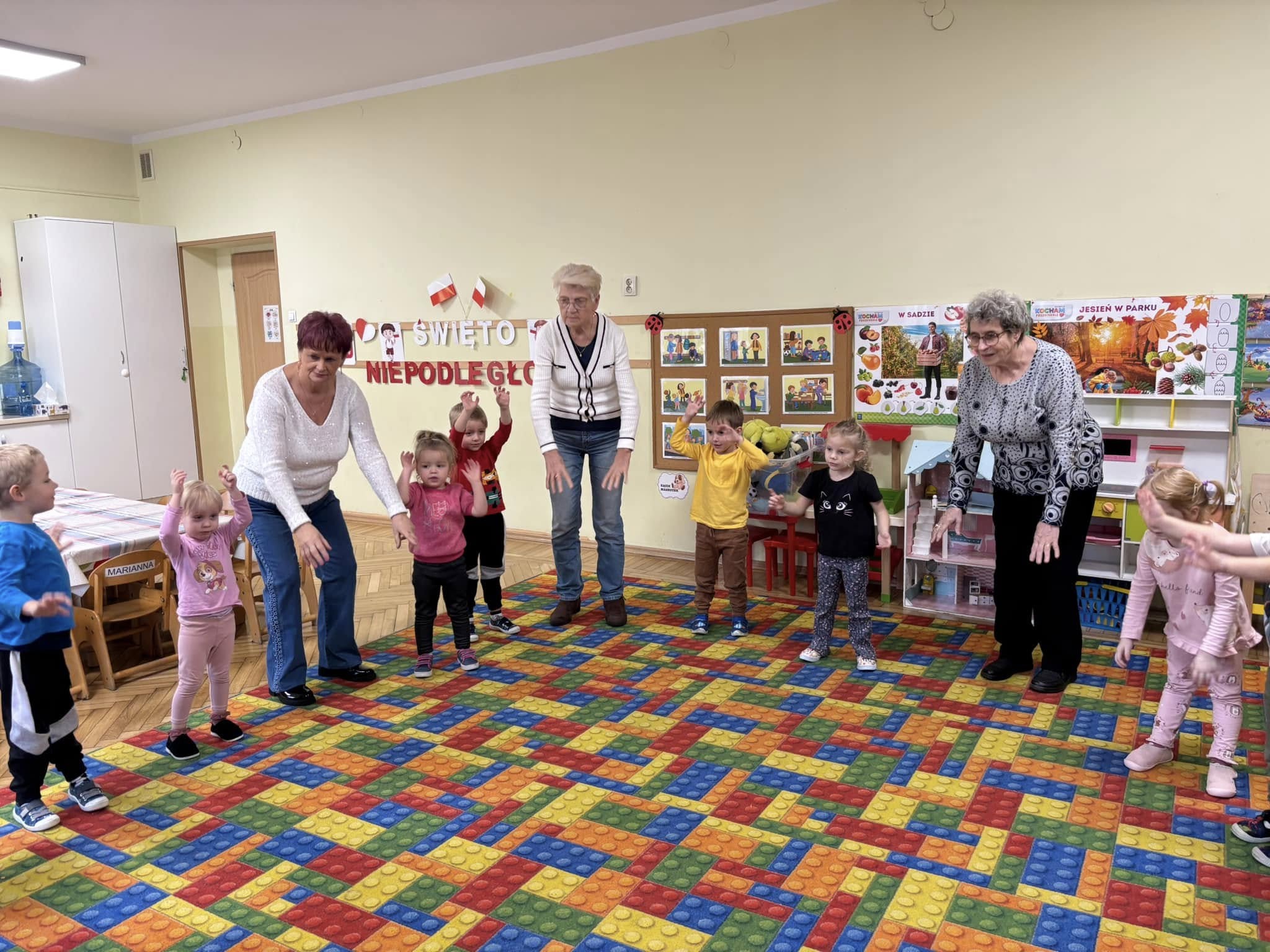 W listopadzie nie zwolniliśmy nawet na chwilę. Miesiąc rozpoczęliśmy wizytą w Publicznym Przedszkolu nr 9 w Kaliszu. Reprezentacja naszych podopiecznych wraz z dziećmi z grupy Biedroneczek wykonały prace, które były zapowiedzią zbliżającego się Święta Niepodległości. Z tej okazji odwiedziła nas Pani Mariola Śmiecińska z Książnicy Pedagogicznej w Kaliszu, która przygotowała dla seniorów pieśni patriotyczne. Przez cały miesiąc odbywały się regularne zajęcia. Szczególnym powodzeniem cieszyła się joga dla seniora. Zarówno ta wymagająca sprawności fizycznej jak i nasza wersja tzw. „Joga śmiechem”. Warto wspomnieć o takich zajęciach jak karaoke, zajęcia plastyczne, spotkania chóru, próby teatralne czy zajęcia kulinarne. Wspólne pieczenie chleba uwieńczyliśmy wspaniałym śniadaniem. Listopad upłynął od znakiem przygotowań do „Dnia Seniora”, który obchodziliśmy 14 listopada. Dziękujemy Wiceprezydentowi Panu Mateuszowi Podsadnemu, Pani Skarbnik Miasta Kalisza oraz wszystkim dyrektorom i kierownikom zaprzyjaźnionych jednostek za obecność i udział w tym święcie. Przedstawienie „O złotej Rybce”, występ chóru, wiersz Pana Czesława, wsytęp Pani Małgorzaty Kraszkiewicz oraz konkurs na „Bajeczne przebranie” to kropla w morzu piątkowego uroczystego popołudnia. Występ zespołu, przepyszne jedzenie oraz tańce, to dopięło całość na ostatni guzik.Dziękujemy także za poduszki, które były drobnym prezentem dla naszych Seniorów a zostały wykonane przez osadzonych w Oddziale Zewnętrznym w Kaliszu Aresztu Śledczego w Ostrowie Wielkopolskim. Miesiąc zakończyliśmy wspólnym świętowaniem urodzin Pani Ani, kończąc na zabawie tanecznej, która mogłaby trwać do rana. W naszym Dziennym Domu nie ma nudy! Kto nie wierzy, zapraszamy!