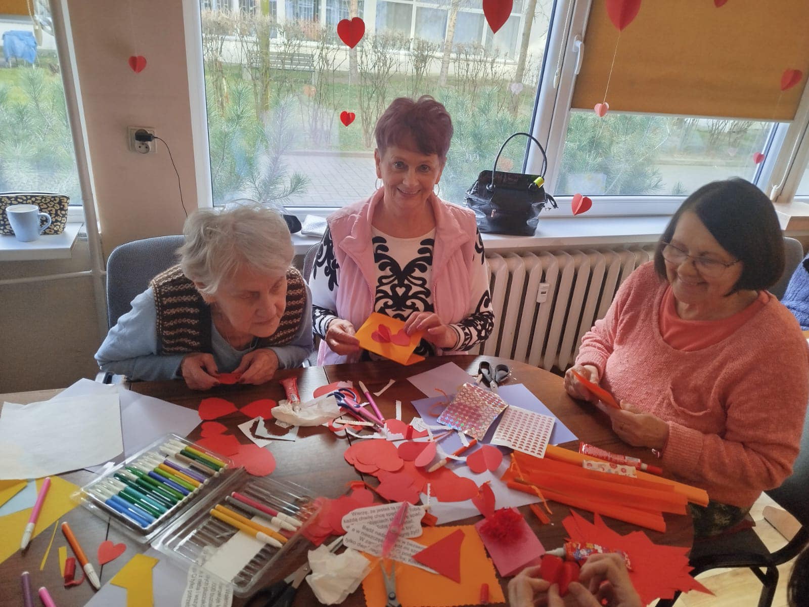 Luty w Dziennym Domu Pomocy Społecznej obfitował w różnorodne aktywności i wydarzenia, które przyniosły naszym podopiecznym wiele radości i okazji do rozwoju. Jak zawsze, staraliśmy się, aby każdy dzień niósł ze sobą coś wyjątkowego. Miesiąc rozpoczęliśmy od dbania o zdrowie i kondycję. Regularna gimnastyka, joga i spacery z kijkami nie tylko pozwoliły zachować sprawność fizyczną, ale także wpłynęły pozytywnie na samopoczucie uczestników. Codzienne zajęcia takie jak kronika, ćwiczenia pamięci, chór czy lekcje języka angielskiego zapewniły rozwój intelektualny i dbałość o aktywny umysł. Nasi podopieczni mogli również wziąć udział w zajęciach teatralnych, brydżowych, plastycznych, a także w kąciku muzycznym. Jednym z wyjątkowych wydarzeń w lutym było spotkanie z Panią z Książnicy Pedagogicznej, która w humorystyczny sposób przybliżyła nam zabawne anegdoty z czasów PRL-u. W tym miesiącu świętowaliśmy również imieniny Pani Zdzisławy i Pana Henryka, a podczas obchodów Walentynek zorganizowaliśmy romantyczne wydarzenia, które przeniosły nas w czasy młodzieńczych miłości. Odbyło się miłosne karaoke, test na "jakim romantykiem jesteś" oraz rozdanie kartek z walentynkowej poczty. Występ Pana Zbyszka dodał całości wyjątkowego klimatu. Poza tym, w lutym skupiliśmy się także na profilaktyce zdrowotnej. Zorganizowaliśmy spotkanie dla osób chorych na cukrzycę i nie tylko, podczas którego nasi podopieczni dowiedzieli się o znaczeniu regularnego monitorowania poziomu cukru. Panie z Cogito Med przeprowadziły badanie ciśnienia z obu rąk, które pozwoliło na szacunkowe określenie wieku naczyń krwionośnych i ryzyka wystąpienia chorób takich jak miażdżyca czy udar. Przypomnieliśmy, jak ważne jest zdrowe odżywianie, aktywność fizyczna i unikanie używek. Cieszymy się, że możemy zapewniać naszym podopiecznym tak bogatą ofertę zajęć, które nie tylko wzbogacają ich codzienność, ale także wpływają pozytywnie na zdrowie, umysł i samopoczucie. Luty w Dziennym Domu Pomocy Społecznej był miesiącem pełnym uśmiechów, ruchu, nauki i relaksu.