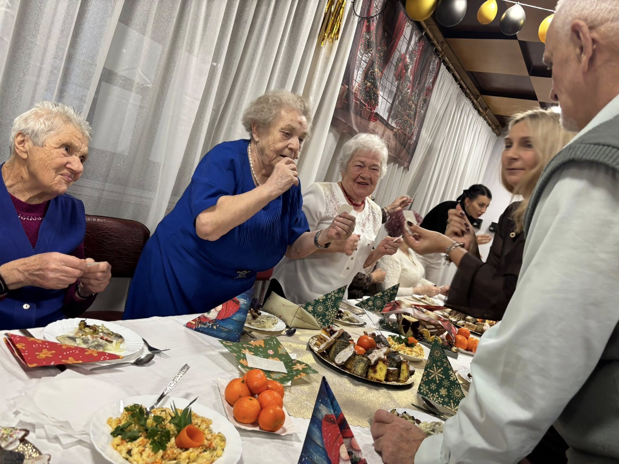 Grudzień w Dziennym Domu Pomocy Społecznej w Kaliszu upłynął w wyjątkowo ciepłej, świątecznej atmosferze, obfitując w liczne spotkania, wydarzenia integracyjne oraz działania edukacyjne skierowane do naszych Seniorów. Na początku miesiąca odbyły się spotkania edukacyjne poświęcone bezpieczeństwu w sieci. Dzięki zaangażowaniu pań policjantek z Komenda Miejska Policji w Kaliszu oraz pani z Kancelaria Radcy Prawnego Izabela Rabiega-Mikołajczyk, Seniorzy mogli dowiedzieć się, jak chronić się przed oszustwami internetowymi i bezpiecznie korzystać z nowych technologii. Wyjątkowym wydarzeniem była uroczystość mikołajkowa, zorganizowana dzięki wsparciu Fundacja ORLEN. Szczególne podziękowania kierujemy do Magdalena Kupczyk za pomoc w realizacji wydarzenia. Ogromnych wzruszeń dostarczył występ uczniów klasy 3A ze Szkoła Podstawowa nr 7 w Kaliszu, przygotowany pod opieką Arleta Wawrzyniak. Wspólne dekorowanie pierników, fotobudka oraz wizyta Świętego Mikołaja sprawiły Seniorom wiele radości i wprowadziły prawdziwie świąteczny nastrój. Kolejnym niezwykle ważnym momentem była uroczysta Wieczerza Wigilijna. W imieniu nieobecnego Pana Wiceprezydenta życzenia Seniorom przekazała Aneta Ochocka, Skarbnik Miasta. Ciepłe słowa skierowała również Kierownik DDPS Emilia Bińczyk, podkreślając znaczenie wspólnoty i wzajemnej troski. Duchowy wymiar spotkania zapewnił Paweł Kostrzewa, który poprowadził modlitwę i wspólne łamanie się opłatkiem. Szczególnie wzruszający był występ naszych Seniorów, którzy wspólnie zaśpiewali tradycyjne kolędy. Radość sprawiły również prezenty przekazane przez szkoły w ramach akcji „Herbatka dla Babci i Dziadka”. Całość dopełniła pyszna, tradycyjna kolacja wigilijna przygotowana przez nasze niezastąpione kucharki. W grudniu nie zabrakło także międzypokoleniowych spotkań. Gościliśmy młodzież z Technikum im. św. Józefa w Kaliszu, która zorganizowała świąteczną sesję fotograficzną, zakończoną wspólnym kolędowaniem. Piękny koncert kolęd zaprezentowali również uczniowie IV Liceum Ogólnokształcące im. Ignacego Jana Paderewskiego w Kaliszu. W zeszłym tygodniu przed Świętami odwiedziły nas także dzieci z Przedszkole nr 1 w Kaliszu, które nie tylko zaśpiewały kolędy, ale również obdarowały Seniorów pięknymi upominkami. Oprócz wymienionych wydarzeń w grudniu w naszym Domu odbywały się także liczne inne zajęcia terapeutyczne, integracyjne i aktywizujące, dostosowane do potrzeb i możliwości Seniorów. Grudzień był dla naszej społeczności czasem bliskości, wzruszeń i wspólnego przeżywania magii Świąt. Dziękujemy wszystkim, którzy byli z nami i przyczynili się do stworzenia tej wyjątkowej atmosfery. ❤️